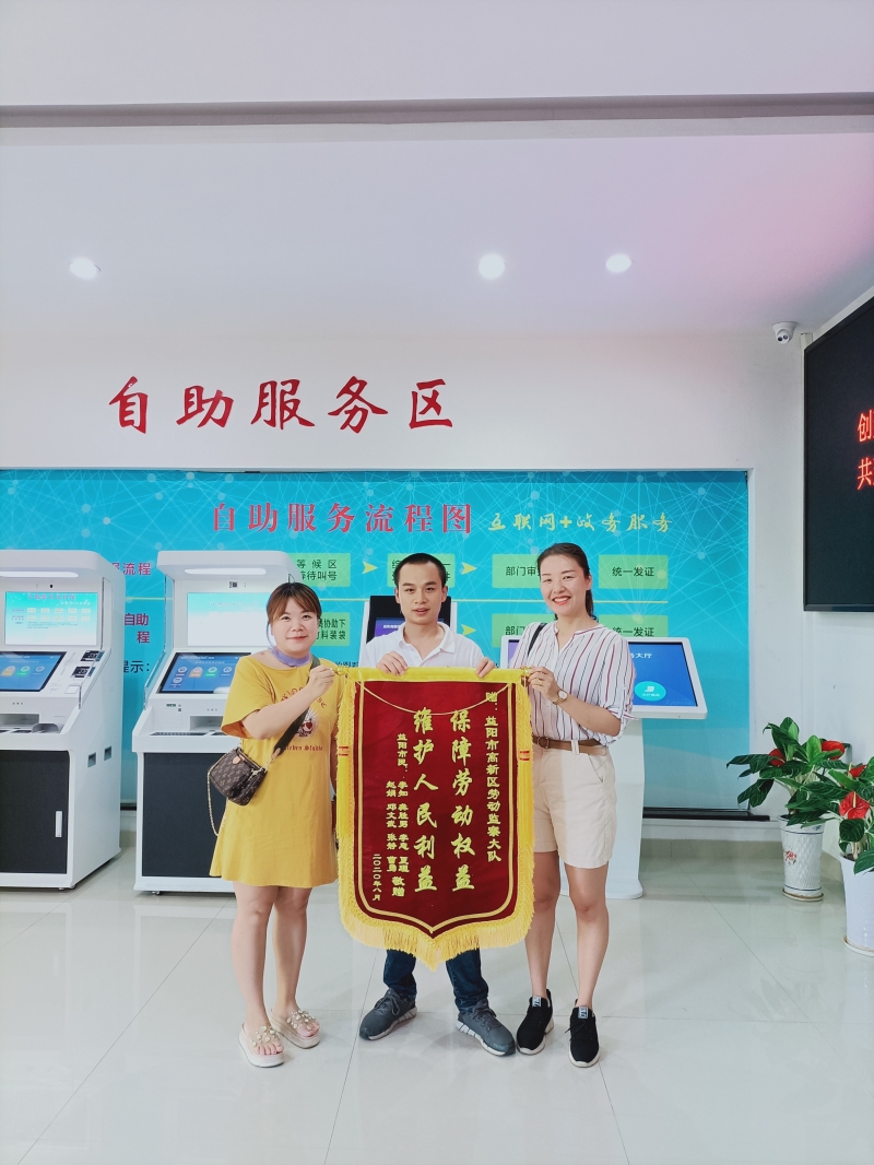 8月28日上午,高新区政务服务大厅迎来了两名笑容盈面的女士,手里还拿着一面锦旗。原来她们是代表8名工友来感谢高新分局工作人员对她们的帮助。
