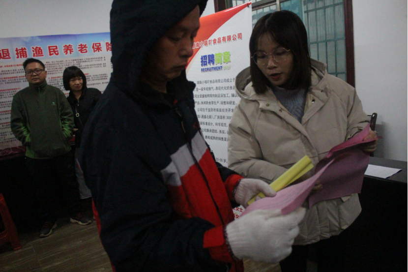 工作人员向渔民详细介绍岗位信息