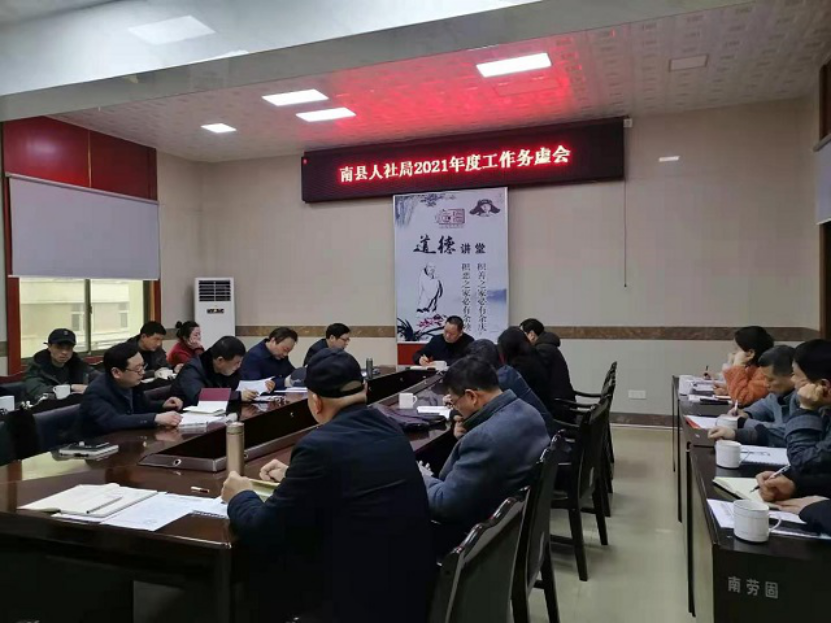 2月4日下午,南县人社局召开2021年工作务虚会,畅谈发展思路和打算,谋划新一年工作重点。党组班子成员、各二级单位负责人、各乡镇社会事务综合服务中心主任、相关股室负责人与会。党组副书记、副局长陈军来主持会议。