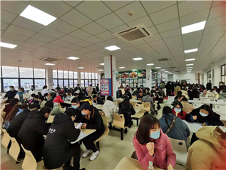 现场观摩,择岗就业。园区内分别搭建了岗位介绍、求职登记、面试三个区域,开放的食堂和宿舍,让求职者更直观的了解企业概况。据统计,现场填写并提交登记表的求职者有177人。