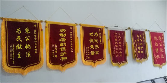 从墙上挂满的锦旗可以看出,这样的场景并不少见。2021年一季度,该区人社局通过认真履行劳动监察、劳动仲裁职责,为571名农民工追回欠薪款共 987.9345万余元,有力维护了农民工的合法权益。(资阳区人社局 李中辉)