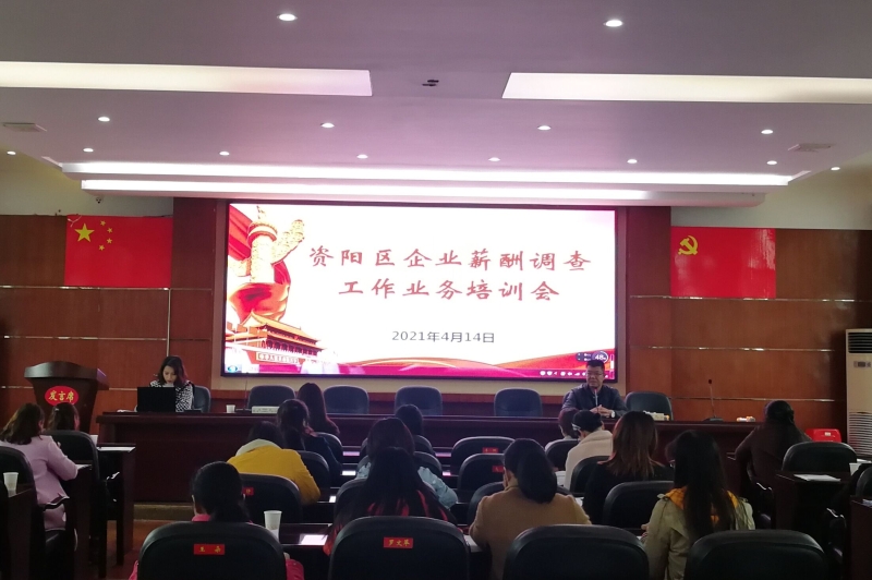 为开展好2021年企业薪酬调查工作,4月14日,资阳区召开企业薪酬调查工作业务培训会,辖区内43家样本企业的人事负责人、财务统计等相关人员参加。