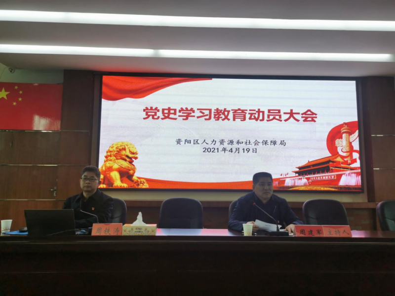 为认真贯彻落实中央目标要求和全省党史学习教育动员大会精神,推动党史学习教育在人社系统深入开展,4月19日下午,资阳区人社局召开党史学习教育再动员大会,全系统干职工和离退休干部代表参会。