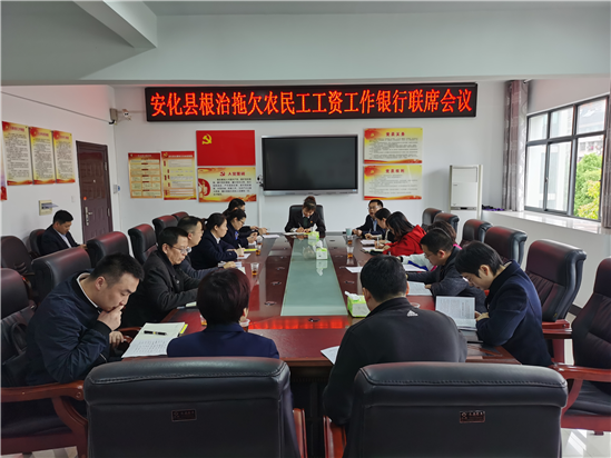 4月19日下午,县人社局和中国人民银行安化支行组织建设银行、工商银行等8家银行在县人社局4楼会议室召开了根治拖欠农民工工资工作银行联席专题会议。会议传达学习了《保障农民工工资支付条例》及相关文件精神,就农民工工资专用账户存在问题进行了通报,并就具体整改事项进行了部署。
