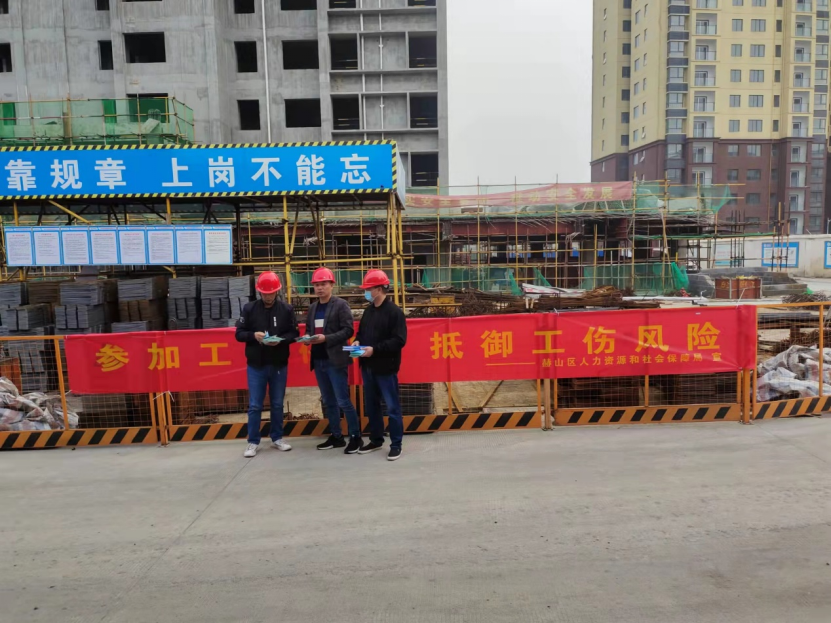 在湖南省湘钧建设有限公司盛益幸福家园项目建筑工地,工作人员耐心地向建筑工人解读工伤保险政策,面对面解答工伤预防、工伤保险参保办法、建筑工程按项目参保操作办法、工伤认定和工伤保险待遇领取等有关问题,使建筑工人对工伤保险政策法规有了进一步了解,增强了他们依法维权的意识。