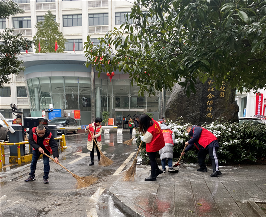 安化县人社局节后上班第一天不忙拜年忙扫雪