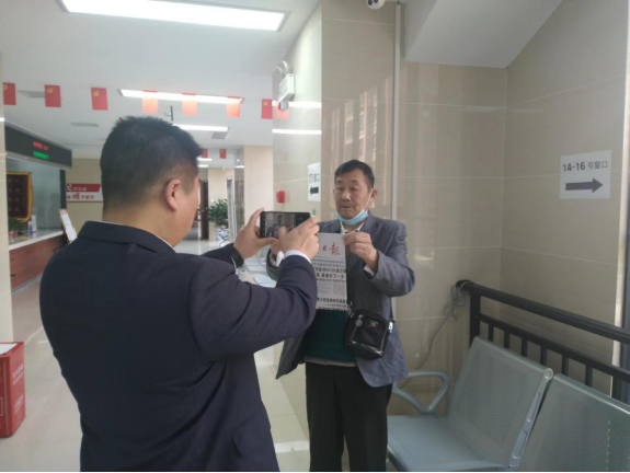 来到政务服务大厅人社专区,厉大爷得到了大厅志愿者的热情接待。但具体到业务经办环节,就卡住了,目前我们的养老待遇资格认证业务是以省为单位开展的,外省人员我们调取不了数据,也没办法给他直接办理。事情一时间陷入僵局。窗口首席李术明同志得知这一情况,果断出手,召集相关工作人员会商、一起想办法。我们湖南省内是可以在省人社厅的官方APP“智慧人社”上面来进行养老待遇资格认证的,那么江苏是不是也有类似的呢?手机上一查,果然有个“江苏智慧人社”。但是下载安装使用以后,却发现只开放了企业养老待遇和工伤待遇这两个资格认证,城乡居保只能查询状态,不能做资格认证。这时候具体负责资格认证的同志提出来,另一个网上认证渠道“老来网”目前已经扩展到多个省区,是不是可以试试。结果还是不行,查不到厉大爷的信息。最后,李首席拿出了最后一个法宝,直接打对方人社局电话!按照网上查询到的电话号码打过去之后,铜山区人社局答复到:目前没有畅通网上自主认证渠道。李首席又提出来,是否能由我们这边提供厉大爷手持身份证和近期报纸的照片,请对方代为办理。这个提议得到了对方的肯定。在完成了照片拍摄和发送以后,李首席又继续和铜山区人社局工作人员对接,并提供了厉大爷的联系方式,请工作人员进一步和厉大爷联系确认。办完这些,已经将近12点,李首席一口水都没来得及喝。