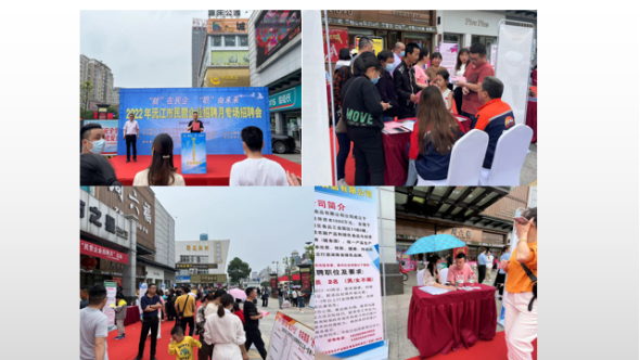 为充分发挥民营企业吸纳就业渠道作用,帮助高校毕业生、退役军人、脱贫劳动力等重点群体就业。5月22日,由沅江市人社局主办,沅江市教育局、退役军人事务局、总工会、妇联、残联、工商联协办的沅江市2022年民营企业专场招聘会在沅江美世界广场前坪举办,本次招聘会的主题是“‘就’在民企,‘职’向未来”。