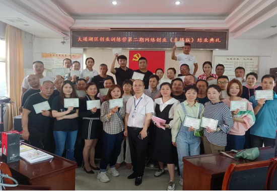 5月27日,大通湖区创业训练营第二期网络创业(直播版)圆满结业,来自全区四镇及周边乡镇的35名学员圆满获得创业培训合格证书。
