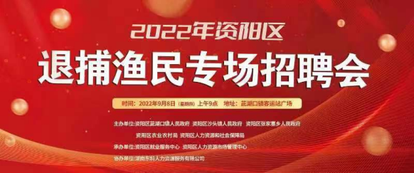 为认真贯彻落实《关于进一步强化全省长江流域重点水域退捕渔民安置保障的工作实施方案》的文件要求,进一步做好我区有就业意愿的退捕渔民及其他重点群体转移就业工作,更好地满足各类人员求职和有用工需求的用人单位的需求,促进资阳经济社会和谐发展,2022年9月8日上午9点在茈湖口镇客运站广场召开资阳区退捕渔民专场招聘会。