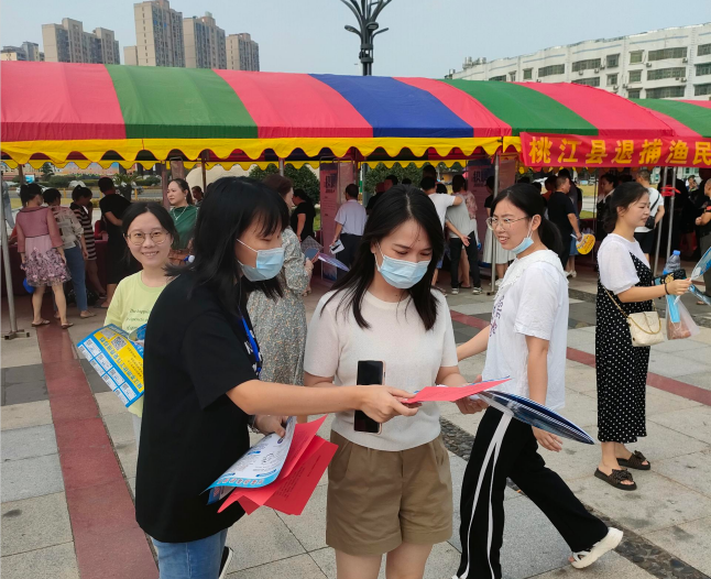 9月9日,桃江县人社局联合多企业在金盆广场举行“企业招人才,金秋送岗位”和“稳经济,稳就业”入园企业专场招聘会,同时开展以“尊法、学法、守法、用法”为主题的法治宣传活动。