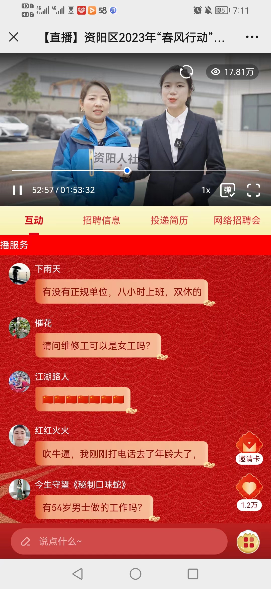 直播间热闹非凡,求职网友纷纷发表评论,为这种到企业直播的新形势点赞。