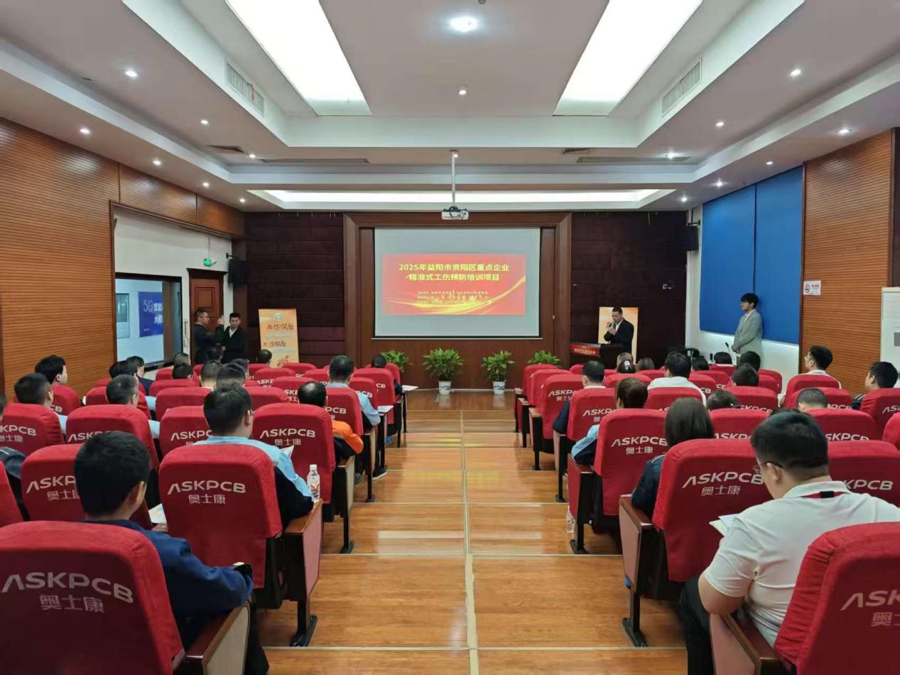 近日,益阳市资阳区重点企业精准式工伤预防培训项目在奥士康科技股份有限公司成功举办。本次培训聚焦电子制造行业安全痛点,为50余名安全管理人员及重点岗位员工“量身定制”《安全法律意识》《双重预防机制实务》两大核心课程,通过理论讲解与案例研讨相结合的方式,显著提升参训人员的安全责任意识与风险防控能力。