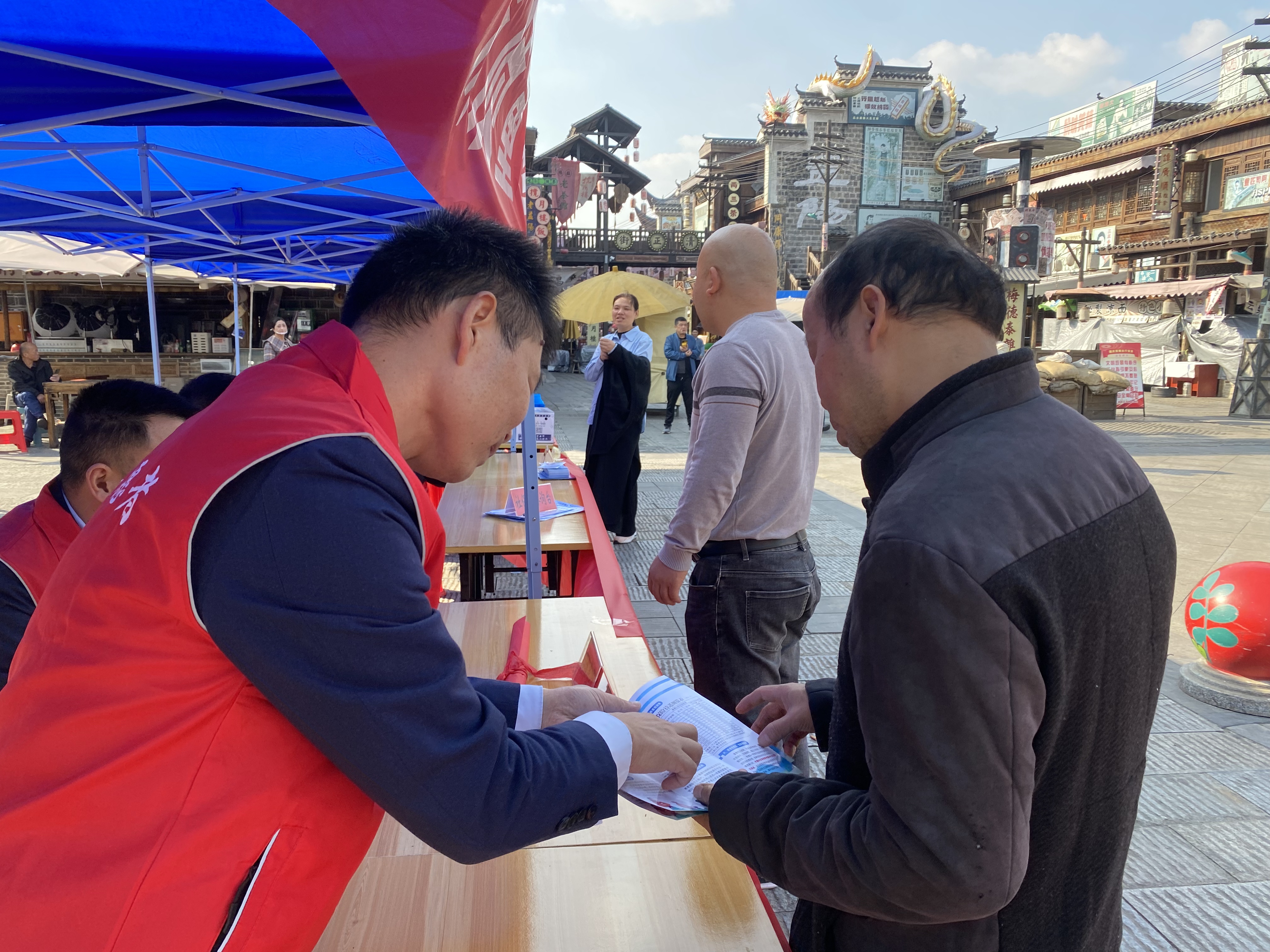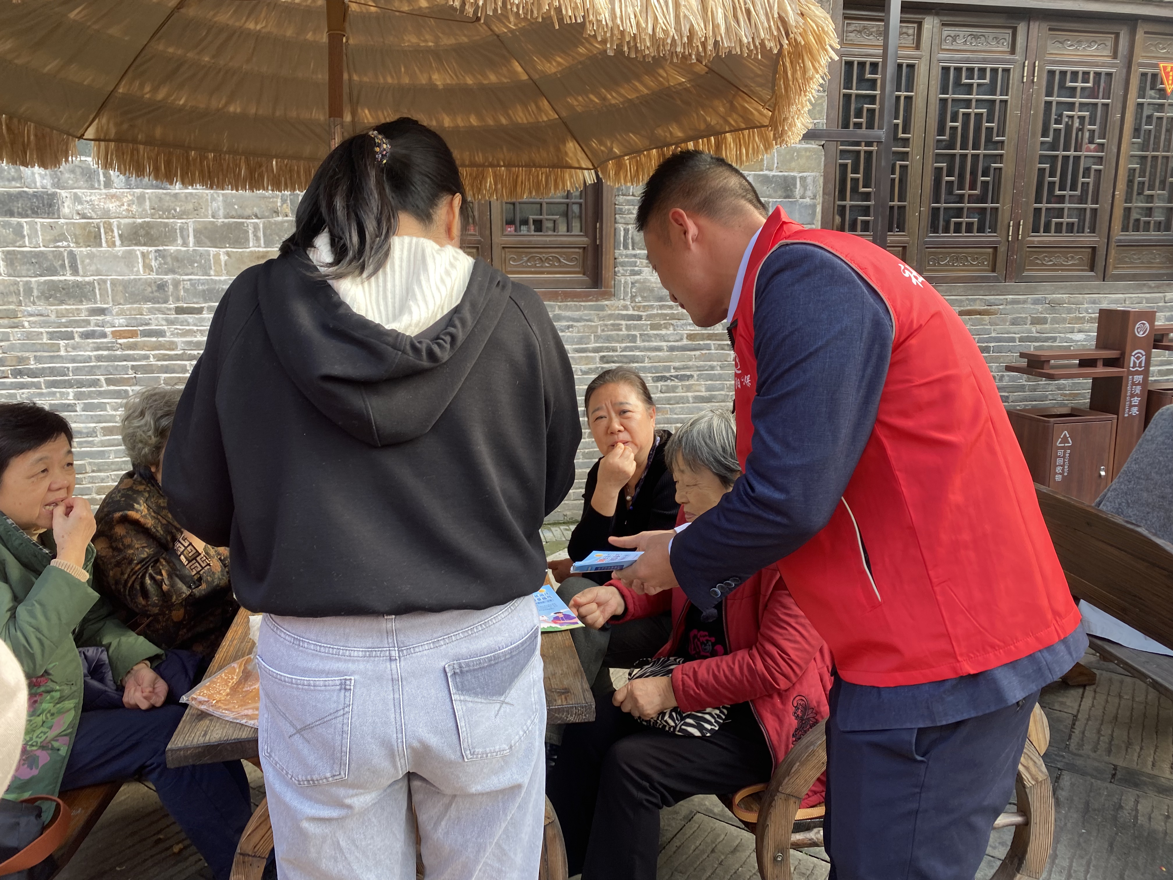 以往,办理社保业务需要前往政务服务大厅。此次活动,社保工作人员主动走出机关、走进社区、走到群众身边,在明清古巷的核心区域设立了“流动社保服务站”。活动现场,醒目的宣传横幅、图文并茂的政策展板、种类齐全的宣传手册,迅速吸引了过往居民和游客的驻足。