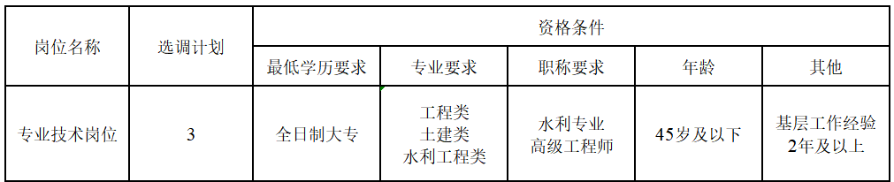 因工作需要,经市编办、市人社局同意,益阳市水利局全额拨款事业单位益阳市洞庭湖工程管理站和益阳市排灌建设管理站面向全市机关事业单位在岗在编人员公开选调全额事业编制工作人员共计3名。根据《关于进一步规范机关事业单位人员流动调配工作的意见》(湘组发〔2015〕26号)要求,现就有关事项公告如下: