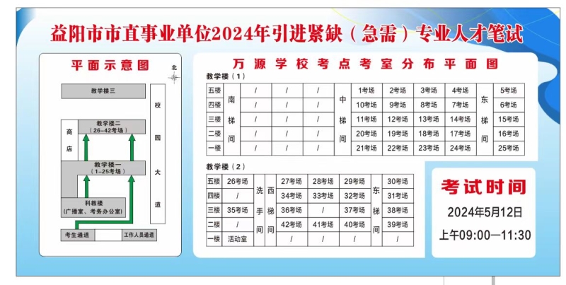 本次笔试考点为益阳万源职业技术学校(原益阳市赫山区万源学校)。