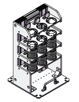 仓储模块含4层*3个存储位,工件最大存储尺寸直径65mm*高度100mm;下面两层配置有共6个工件检测传感器,检测距离最大15mm,传感器信号集成于远程IO模块,与PLC控制器通过modbus_TCP进行信号交互。用于放置机器人关节装配的工件和成品,上面两层未配置传感器,可用于存放复杂工艺编程的工件。