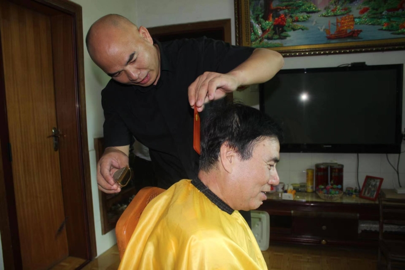 “彭班长,为了表达对您的敬意,今天让您再体验一次部队生活,我来给您理一次发吧。”姚雪华拿出事先准备好的理发工具笑着对彭新发说道。姚雪华边给彭新发理发边仔细询问他的生活情况,高度赞扬他在坚守祖国边境、守护人民安康中所作出的突出贡献,对他一如既往地支持国防建设事业表示感谢,大家聊着家常、其乐融融。