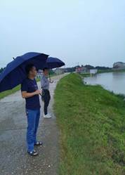 胡治国副局长带队巡线河堤,重点考察了水位上涨较快位置。