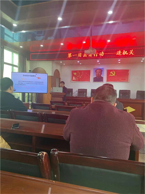 为提升机关干职工应对突发事件的应急处置能力,努力保障自身及群众生命安全,积极创建让人民群众满意的模范机关,3月23日下午3点,桃江县人民医院的专家为益阳市生态环境局桃江分局全体干职工上了一堂别开生面的急救知识和技能培训课。