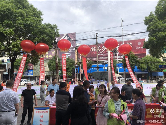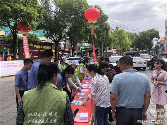 6月4日,雨后的桃江如出水芙蓉,处处散发着清新的味道。主题“人与自然和谐共生“六五”世界环境日宣传活动在县城新龙广场进行,益阳市生态环境局桃江分局、县人民检察院、环保志愿者协会共派员五十多人参加此次活动。