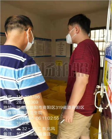 执法人员在检查过鹿坪卫生院医疗废物贮存、处置及医疗废水情况