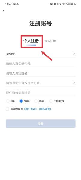 第5步:点击注册,分为个人注册和企业注册,个人点击“个人注册”,企业点击“法人注册”,按要求完成注册。