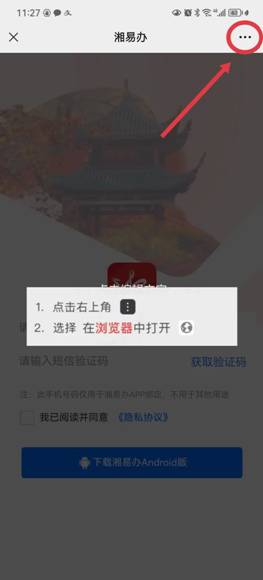 第2步:进入APP安装指引界面,点击右上角三个点,选择在浏览器打开。