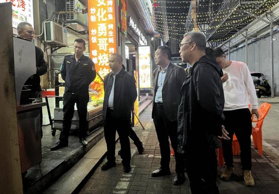 在福中福商业城夜市,代虹宇随机督查了5家餐饮门店,重点检查了油烟净化设施安装及规范运行情况、油烟管道及灶具定期清洗维护台账、有无开展油烟监测,燃气装置是否符合消防安全要求。边检查边指导,向餐饮商户宣传油烟治理的意义,从源头上减少餐饮油烟污染,要求各商户确保油烟净化设备各项运维指标正常。