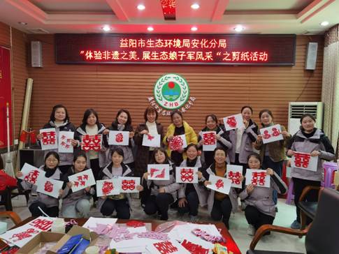 下午在市生态环境局安化分局进行茶话会,交流思想,全体女干职工包括离退休女干职工学习了第7次全国妇女儿童等会议精神、《中华人民共和国家庭教育促进法》《湖南省家庭教育促进条例》《未成年人保护法》;进行禁毒知识宣讲及“利剑护蕾.雷霆行动”活动,开展非遗剪纸活动。剪纸老师介绍了梅山文化中剪纸的诞生和发展背景,用浅显易懂的方式教授剪纸,看着老师的手指像施了魔法一样,在一张小小的纸上变化出精美的图案,大家兴趣盎然,纷纷比照老师的手法开始叠、剪纸,一堂美妙的剪纸课程进行得如火如荼。