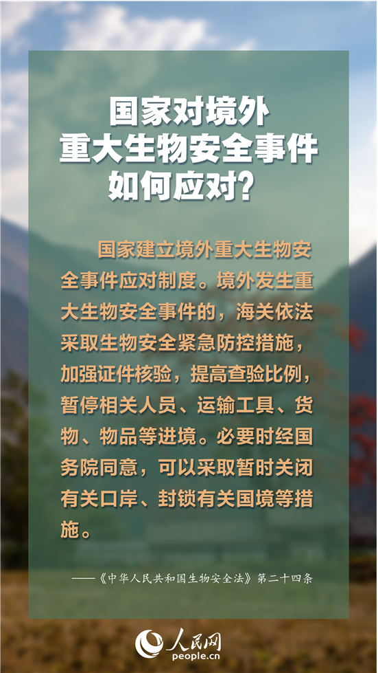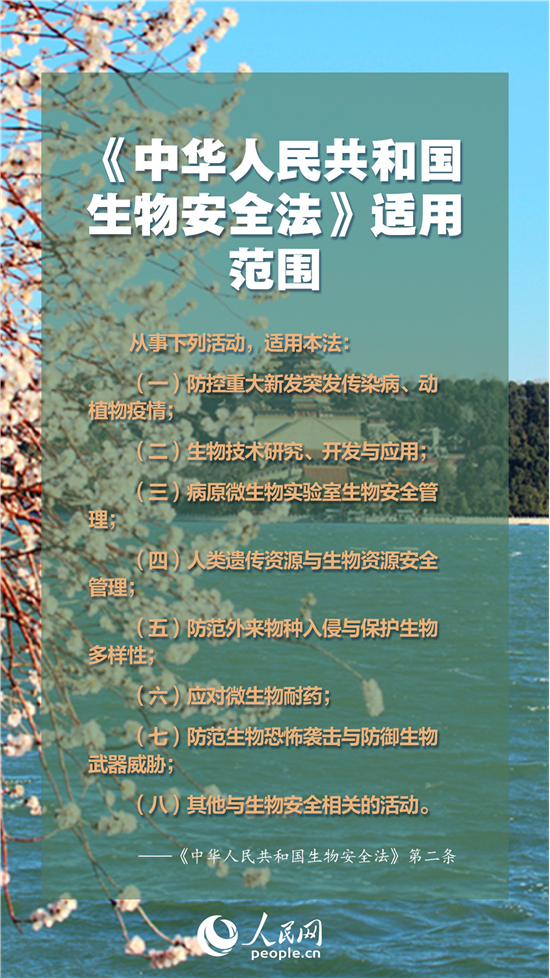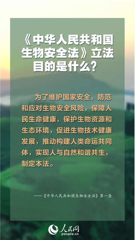这部法律的出台,在生物安全领域形成国家生物安全战略、法律、政策“三位一体”的生物安全风险防控和治理体系,强化了防控重大传染病和动植物疫情的法律制度,集中体现“以人为本”的立法原则,让生物技术发展更好服务于国家发展、人民幸福、人类文明进步。什么是“生物安全”?发现传染病、动植物疫病时该如何做?一起来了解。