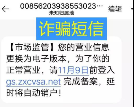 | 警示:谨防以“市场监管”、“工商监管”名义的短信诈骗 |