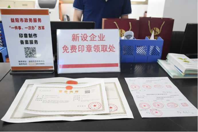 自今年5月以来,益阳市市场监管局结合党史学习教育,积极将学习成果转化成为民办实事的实际行动,推出新开办企业免费赠送首套印章服务,进一步优化营商环境,降低企业开办成本。新开办企业获取营业执照后,现场便可免费拿到行政公章、法人私章、财务专用章、发票专用章“四件套”。同时,企业既可以选择自行领取,也可以选择邮寄,无需花费任何费用。该局还对到窗口办理登记的企业,提供免费复印和全程帮办代办服务。