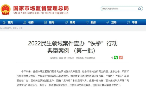 | 我市一案例入选国家市场监管总局2022“铁拳”行动首批典型案例 |