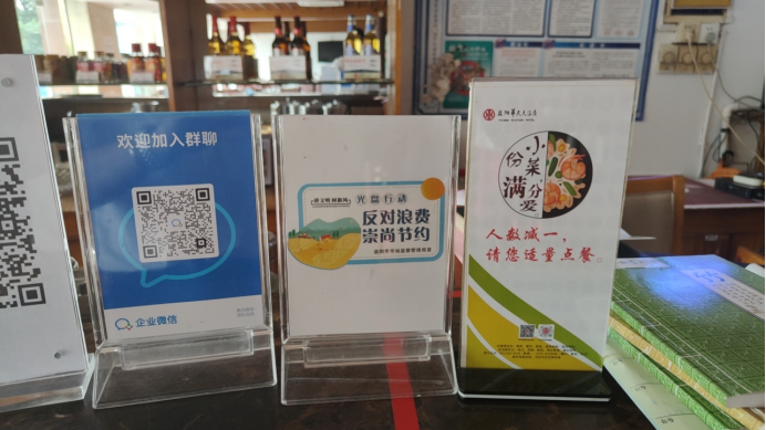 为杜绝“舌尖上的浪费”,聚焦群众“可感知”目标,从“小切口”入手,打出制止餐饮浪费“组合拳”,践行落实反食品浪费。一是前台提示。在服务前台、包厢、餐桌等醒目位置张贴摆放制止餐饮浪费宣传海报、立牌,利用酒店电子屏滚动播放“按需所取、请勿浪费”“浪费可耻、节约光荣”等宣传标语。二是点餐提示。在点餐区推出“半份菜”“小份菜”,推行“人数减一”的点餐方式引导消费者适量点餐、按需点餐。三是餐桌提示。服务员主动提醒顾客餐后打包,并提示菜品的储存方式和再加工方式。一系列举措有效改善了餐饮浪费现象,增强了消费者文明用餐的意识,营造了厉行节约、反对浪费的良好氛围。目前,该酒店通过这些措施,有效推进了制止餐饮浪费行为初见成效。