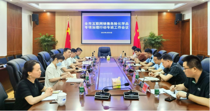 6月20日,市市场监管局牵头召开全市互联网销售危险化学品专项治理行动专班工作会议,市委网信办、市教育局、市公安局、市应急管理局、市邮政管理局、市通信发展管理办公室等专班成员单位参加会议。