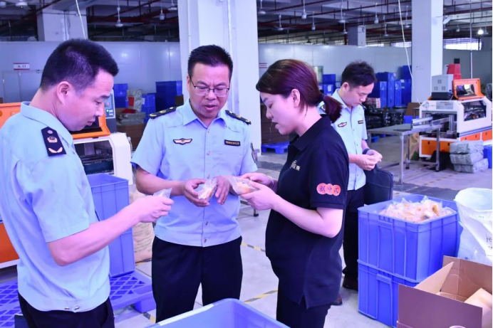 检查人员深入益阳市福星食品有限公司、湖南青松蛋业有限公司等2家重点食品生产企业,重点围绕进货查验、过程控制、产品检验等关键环节展开细致检查。在生产车间,检查人员严格查看原辅材料使用记录、食品添加剂使用情况、关键控制点记录和风险管控措施落实情况,要求企业严防源头,落实原料索证索票制度,确保原料来源可追溯;严管过程,做到原料入厂到成品出厂全过程管控;严控风险,多措并举加强食品添加剂使用管理,强化员工健康管理和生产环境消杀,防止异物混入和交叉污染。在成品仓库,检查人员仔细核对产品标签标识,重点检查生产日期、保质期、配料表等信息是否完整规范,建议企业尽早实施GB 7718-2024《预包装食品标签通则》,防止包装浪费。检查人员还仔细检查了 “日管控、周排查、月调度” 工作机制落实情况,要求企业严格落实食品安全主体责任,提高食品安全管理人员食品安全意识。