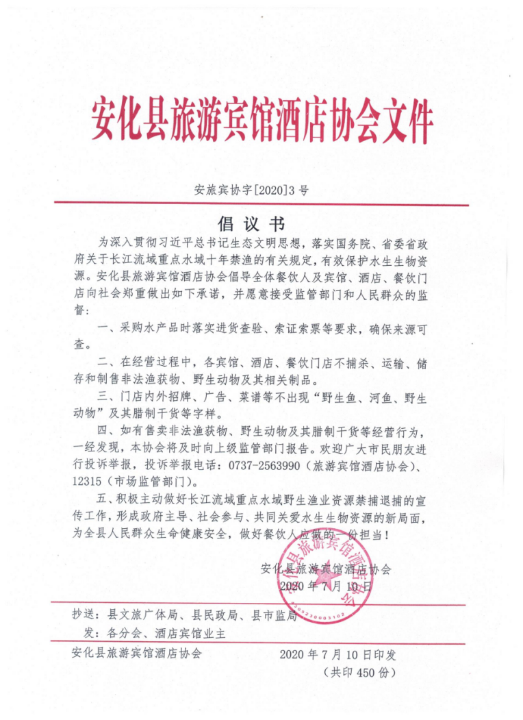 | 【“长江禁捕 打非断链”专项行动】安化县市场监管局: 指导县旅游宾馆酒店协会做好禁捕退捕工作 |