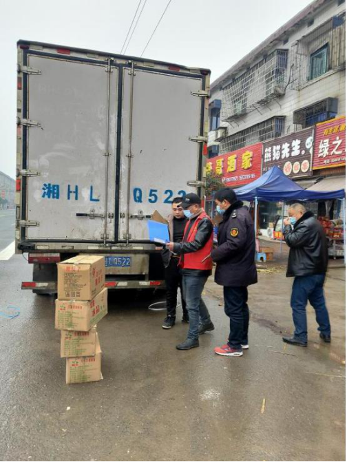 1月21日下午,大通湖区市场监督管理局执法人员对正在城区配送的一辆外地货车上的冷链食品追踪溯源,切实做好风险防控,阻断冷链食品疫情输入风险。