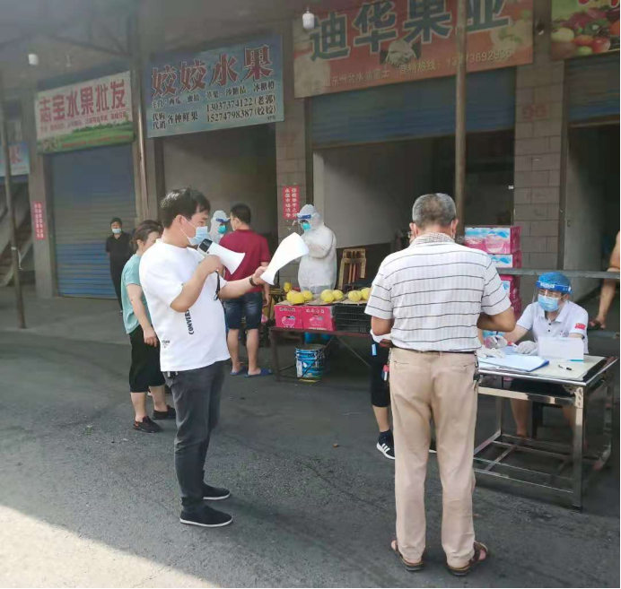 在各企业、市场管理者的精心安排及市场监管干部的有序引导下,各检测点现场秩序井然。所有参加核酸检测的人员佩戴口罩、出示健康卡绿码、保持一米距离,分区域、分时段依次有序排队登记并完成样本采集。重点对红联市场、秀峰水果市场、学门口市场的进口冷链食品经营户、银城湘味等4家食品生产企业的一线工人进行核酸检测采样,共采集核酸检测样本596份,其中食品从业人员样本580份,进口冷链食品样本16份。目前所有样本检测结果均显示阴性。 红联市场进口冷链食品经营者核酸检测采样
