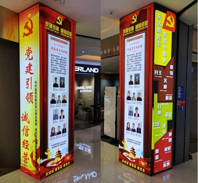 (居然之家万禧城店内亮明身份经营的“共产党员经营户”) 目前,高新区非公综合党委已上门为10名党员商户授予“共产党员经营户”牌匾,并指导他们在门店醒目位置统一悬挂,引导其主动接受消费者监督。同时,区非公综合党委还在该商场显眼处设置了3面以“党建引领 诚信经营”、“我是党员我承诺”、“社会主义核心价值观”为主题的立体灯箱广告,以此激励和引导商场内所有经营户自觉提升服务品质和经营水平,营造文明诚信经营的消费环境。下一步,高新区非公综合党委将继续以“党建引领 诚信经营”工作为抓手,进一步加大宣传力度,扩大工作覆盖面,让更多的党员经营户亮出身份、亮出承诺,实现党建与商圈发展同频共振,营商环境持续优化。 |