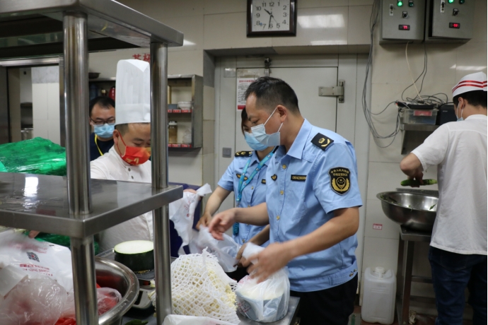 为切实保障高考期间广大师生饮食安全,防范食品安全事故发生,连日来,桃江县市场监督管理局精心部署,迅速行动,采取有力措施,为高考保驾护航。该局组织县域内20个餐饮接待单位负责人和驻点执法人员召开工作会议,开展食品安全知识培训,明确责任和职责,签定《餐饮服务食品安全责任状》。组织开展食品安全隐患排查,对9家不符合相关要求的接待单位提出整改意见。同时对餐饮服务接待单位实行驻点监管,重点围绕证照情况、食品原料采购、原料贮存、餐具消毒情况、食品留样情况、从业人员健康状态等进行“一日一查”,进行食品原料监督抽检,严防不合格食品进入餐桌。目前,检查发现的9家问题单位全部整改到位。