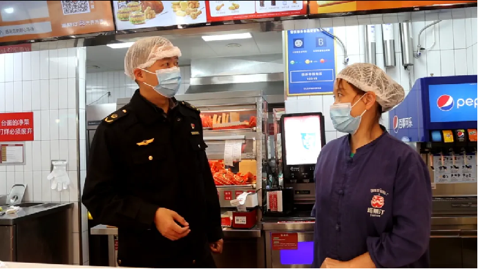 本次行动对塔斯汀汉堡上海城店(一家知名网红餐厅)和匠心饭团(一家典型无堂食外卖餐厅)进行了检查。检查内容全面覆盖食品安全主体责任、从业人员健康管理、厨房环境卫生、原辅料采购和进货查验、加工制作过程、餐饮具清洗消毒、餐厨废弃物处理、制止餐饮浪费等重点检查内容,深入后厨仔细查看了厨房设施设备的卫生清洁状况、食品储存条件、“三防”设施以及加工操作流程。现场下达责令整改通知书一份。