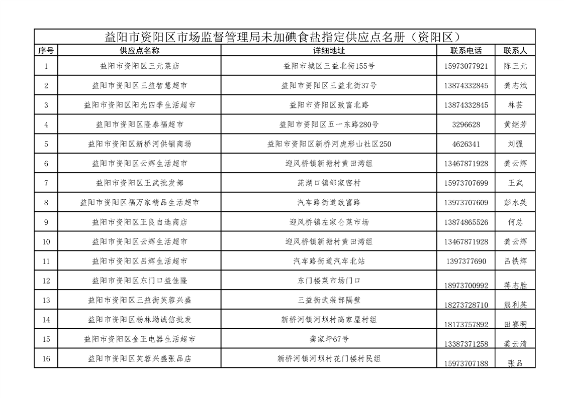 | 益阳市市场监督管理局关于全市未加碘食盐供应网点信息公示 |